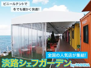 淡路島の西海岸沿いにズラリと並んだ色鮮やかなトレーラーハウスの中に全国から集まった人気の飲食店が!夏は開放的な全席オーシャンビューの客席で、ビニールテントが張られて冬も楽しめるグルメスポット♪